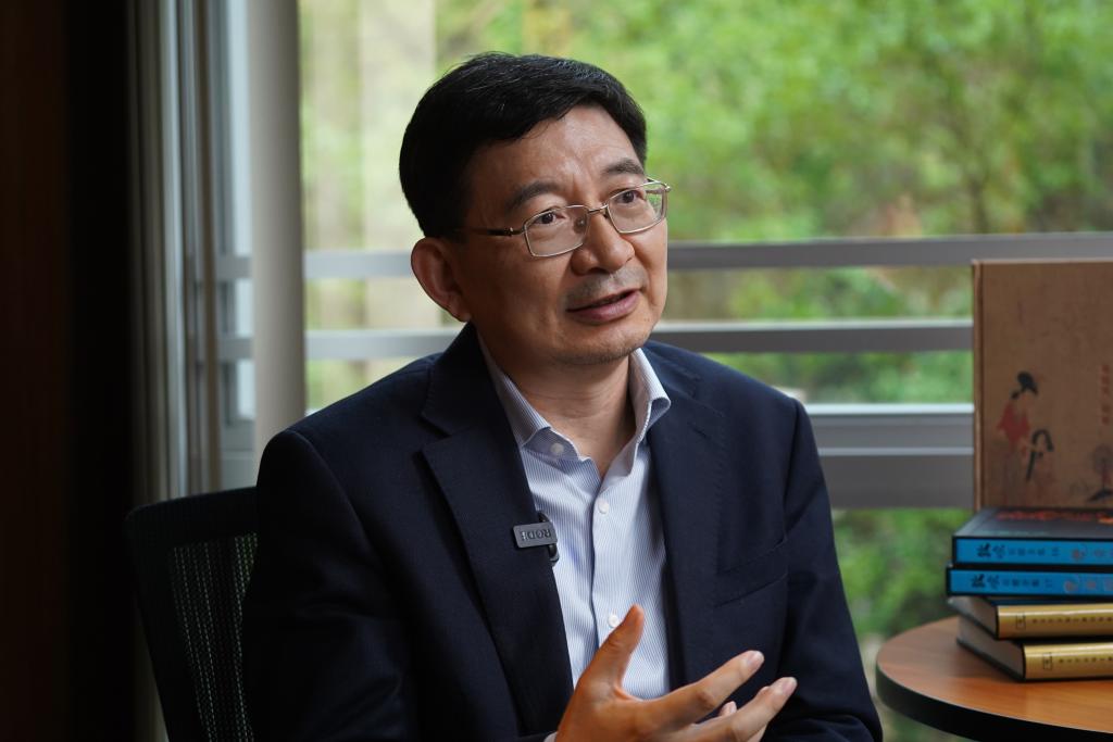 香港商務印書館總經理兼總編輯毛永波在接受記者採訪(4月30日攝)。新華社記者 龍鏡伊 攝